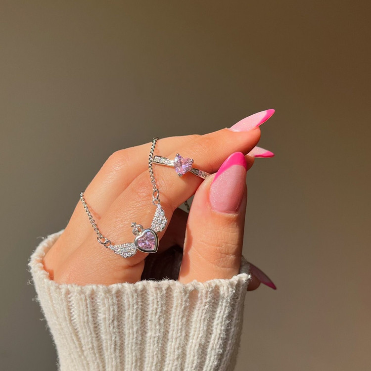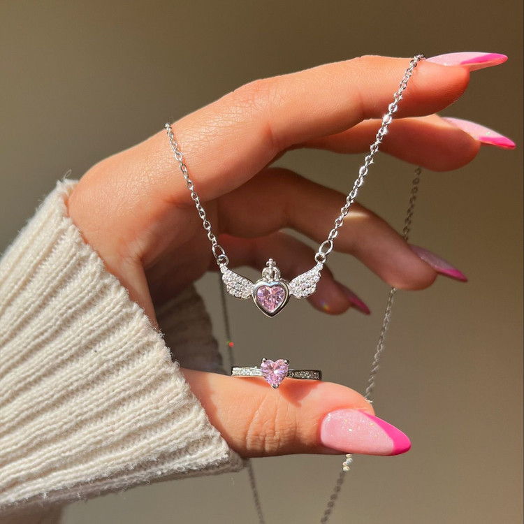 چطور میشه اینو دید و عاشقش نشد🥲🌸 این انگشتر و گردنبند فوق العاده پرنسسی طوره 😍 میگن پسرای خوش سلیقه واسه پارتنرشون از اینا میگیرنا 😂 گردنبند زنجیر استیل / پلاک ابکاری / نگین مخراج / ضد حساسیت انگشتر فری سایز / ابکاری / ضد حساسیت / نگین مخراج / ضد حساسیت
