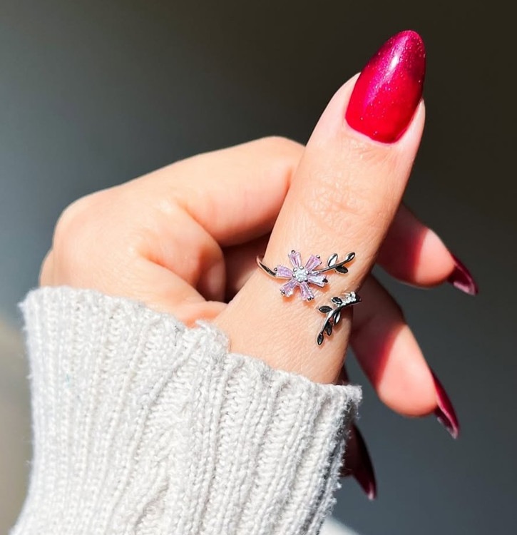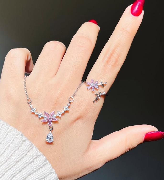 گردنبند و انگشتر شکوفه صورتی