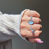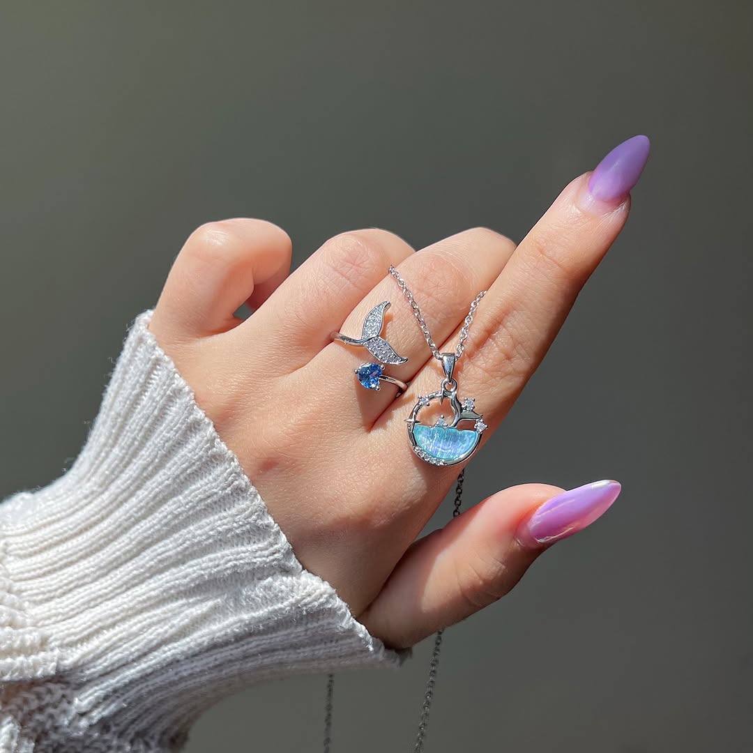 این ست فانتزی گردنبند نقرهای صدفی و انگشتر دم نهنگ با نگین آبی، طراحی شده برای دلهایی که عاشق اکسسوری ظریف و خاصن! ✨🩵