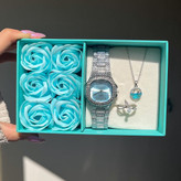 متاسفانه این کالا در حال حاضر موجود نیست. میتوانید از طریق لیست بالای صفحه، از محصولات مشابه این کالا دیدن نمایید.ساعت فول نگین صفحه آبی