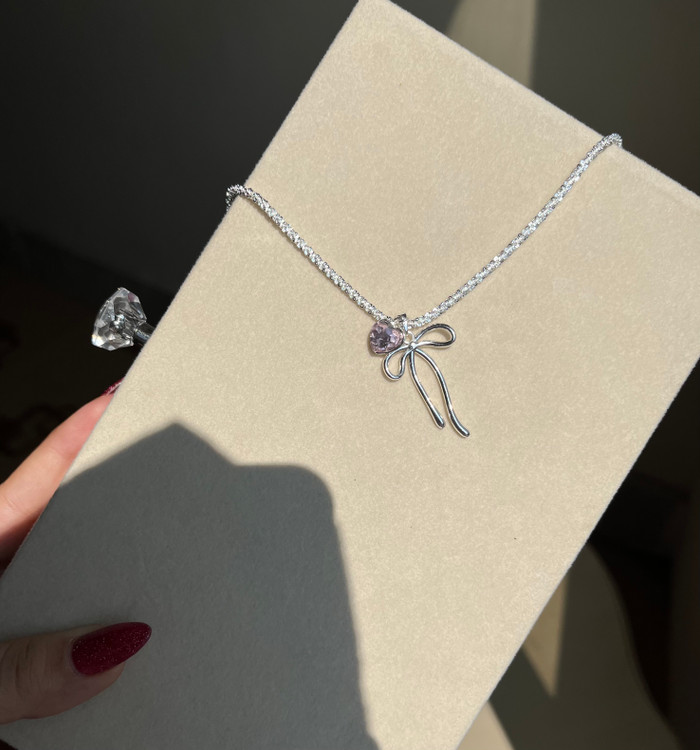 دستبند و گردنبند خاویاری آبکاری نقره اونم با پلاک پاپیون و قلب 😍💕خیلی خوشگلنننن ✨