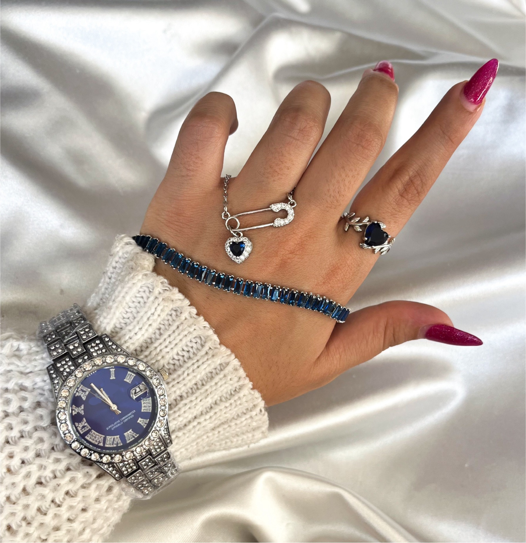پک هدیه ساعت فول نگین آبی