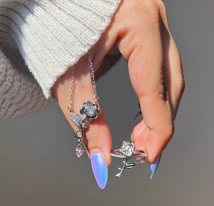 چقدرررر این مدل و دوس داشتممم🥹 از عکاسی کردن این گردنبند گل رز و انگشتر گل رز خسته نمیشدم بس که همه عکساشون کیوت و ناز در میومد 🫠