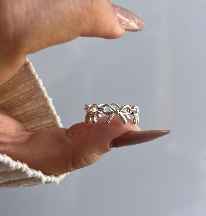 انگشتر پاپیون آبکاری نقره / فری سایز و ضد حساسیت ✨