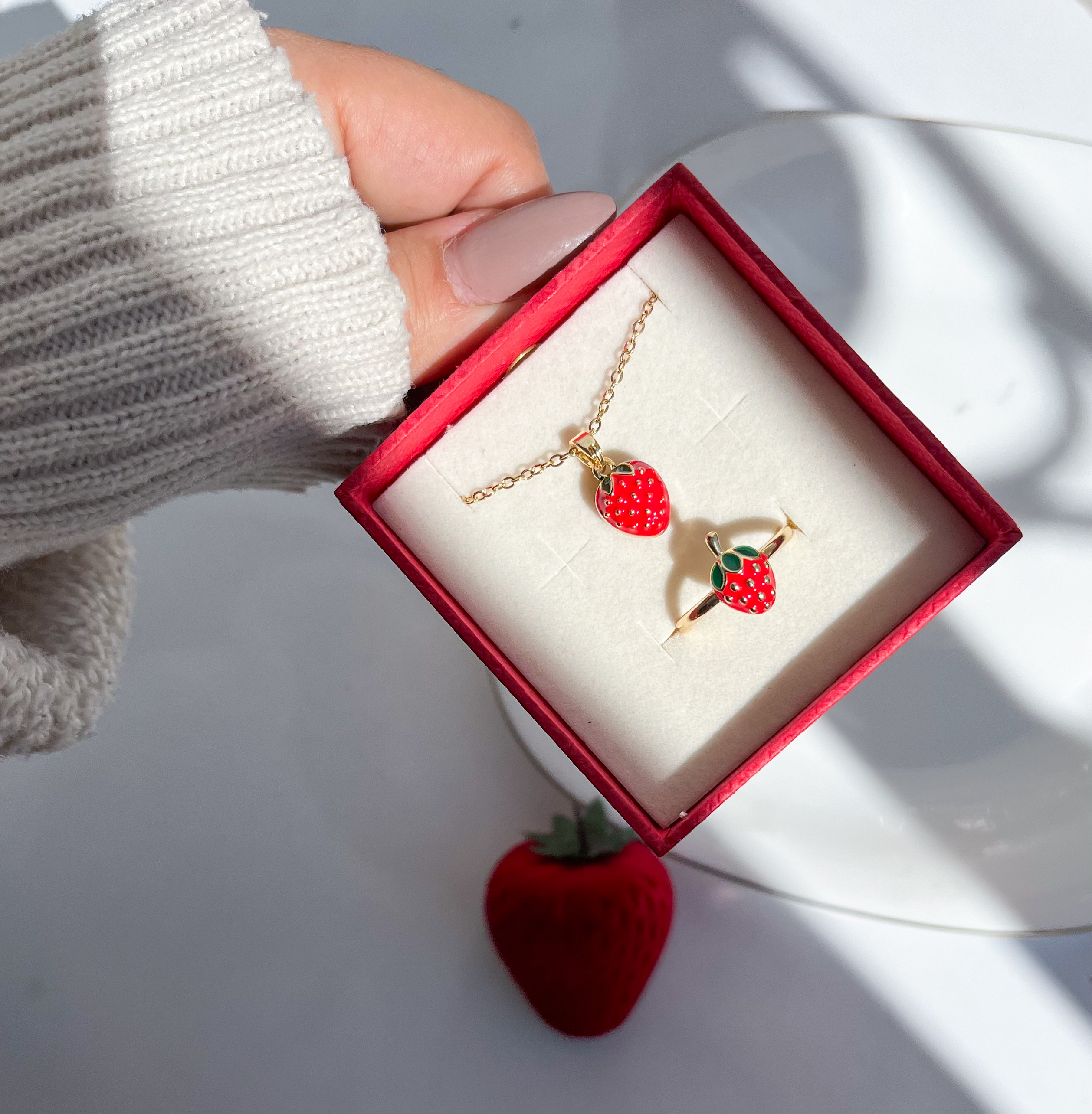 مگه کیوت تر و بامزه تر از گردنبند توت فرنگی و انگشتر توت فرنگی داریم 🥹